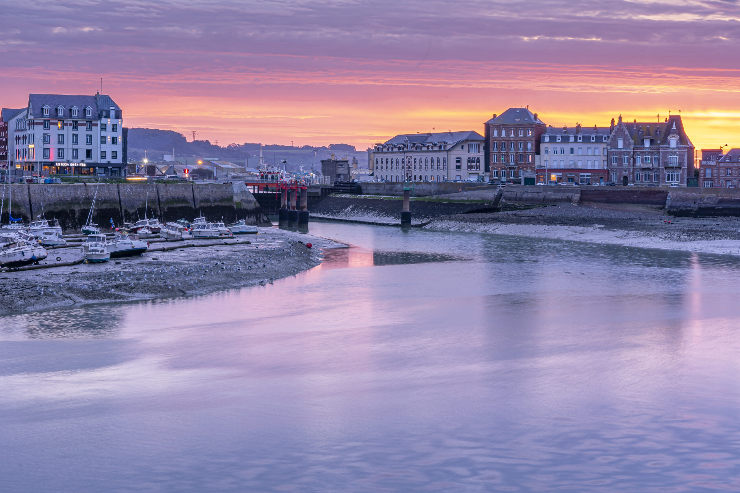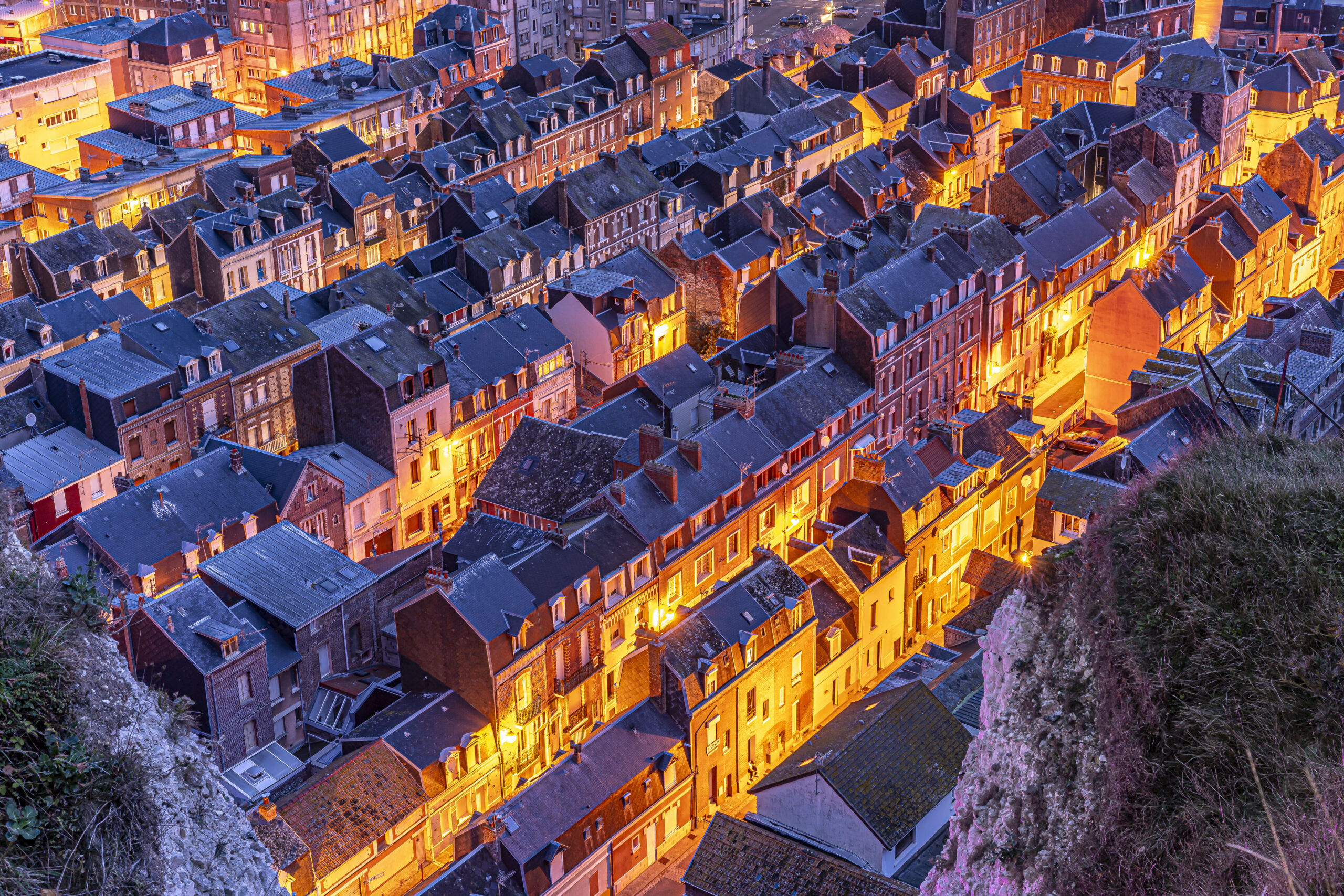 In Le Tréport starten wir mit einem der spannendsten Fotospots der Region: die imposante Klippe mit Blick auf die bunten Dächer der Altstadt und den Hafen. Die Standseilbahn, die fast senkrecht an der Steilwand verläuft, liefert ungewöhnliche Perspektiven – perfekt für kreative Kompositionen mit Linien, Formen und Weite.