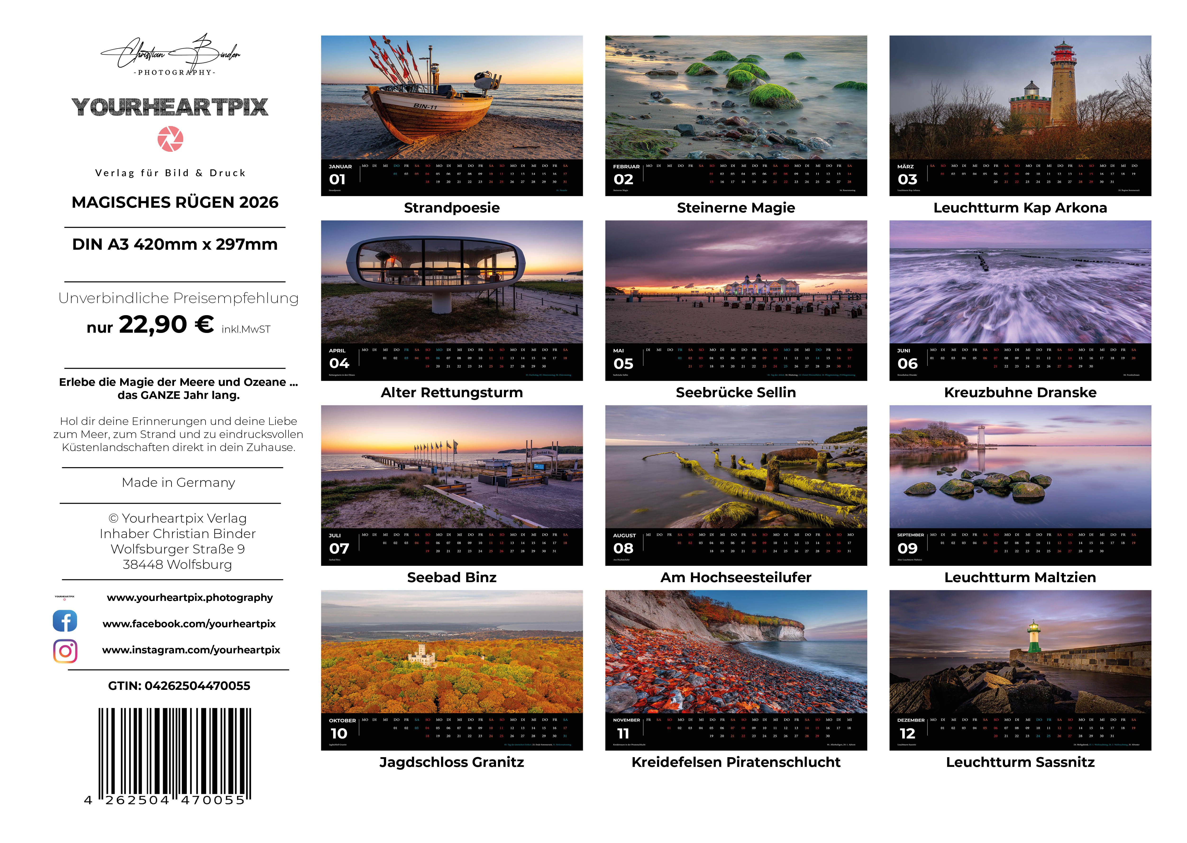 Rügen Kalender kaufen | Fotokalender Rügen 2026 | Wandkalender DIN A3 Rügen | Kalender Rügen Geschenk